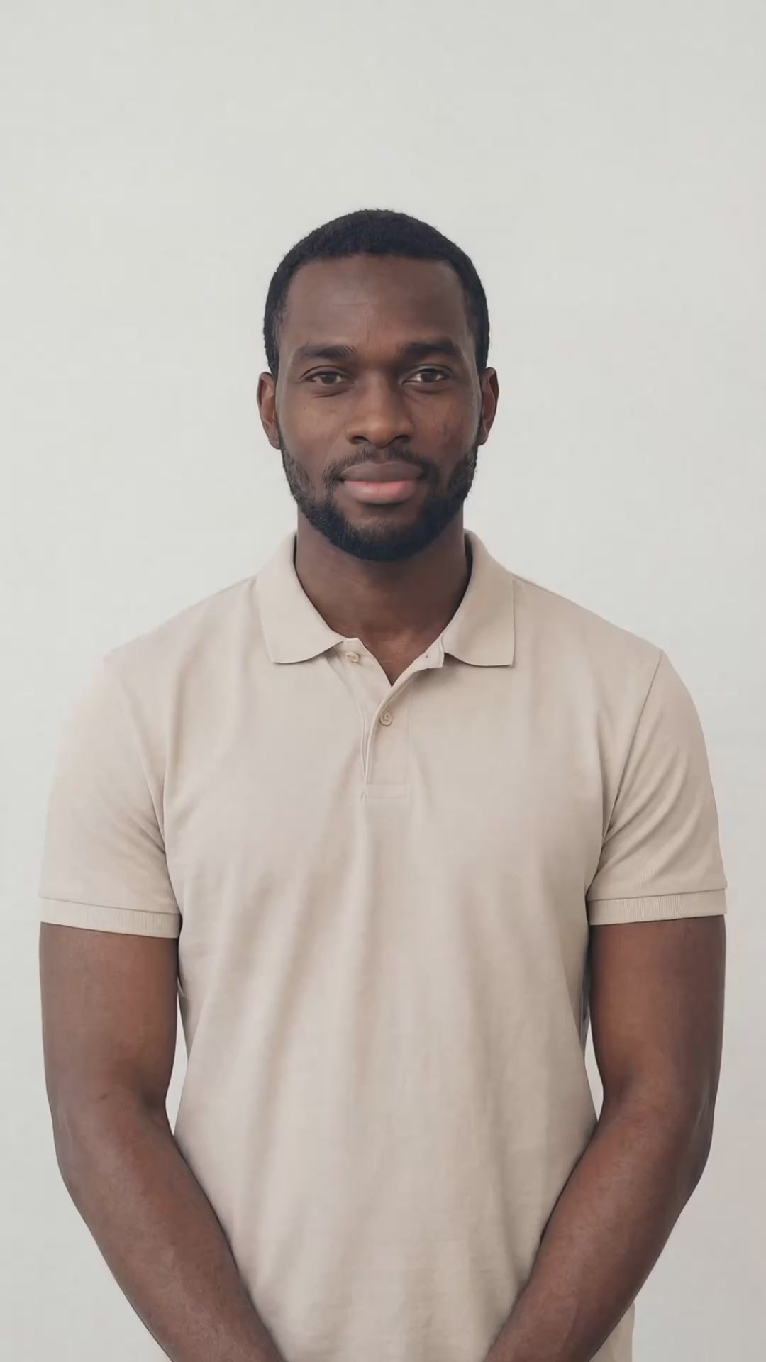 Son attitude calme, son regard direct et son expression neutre inspirent confiance et sérieux dès les premières secondes.